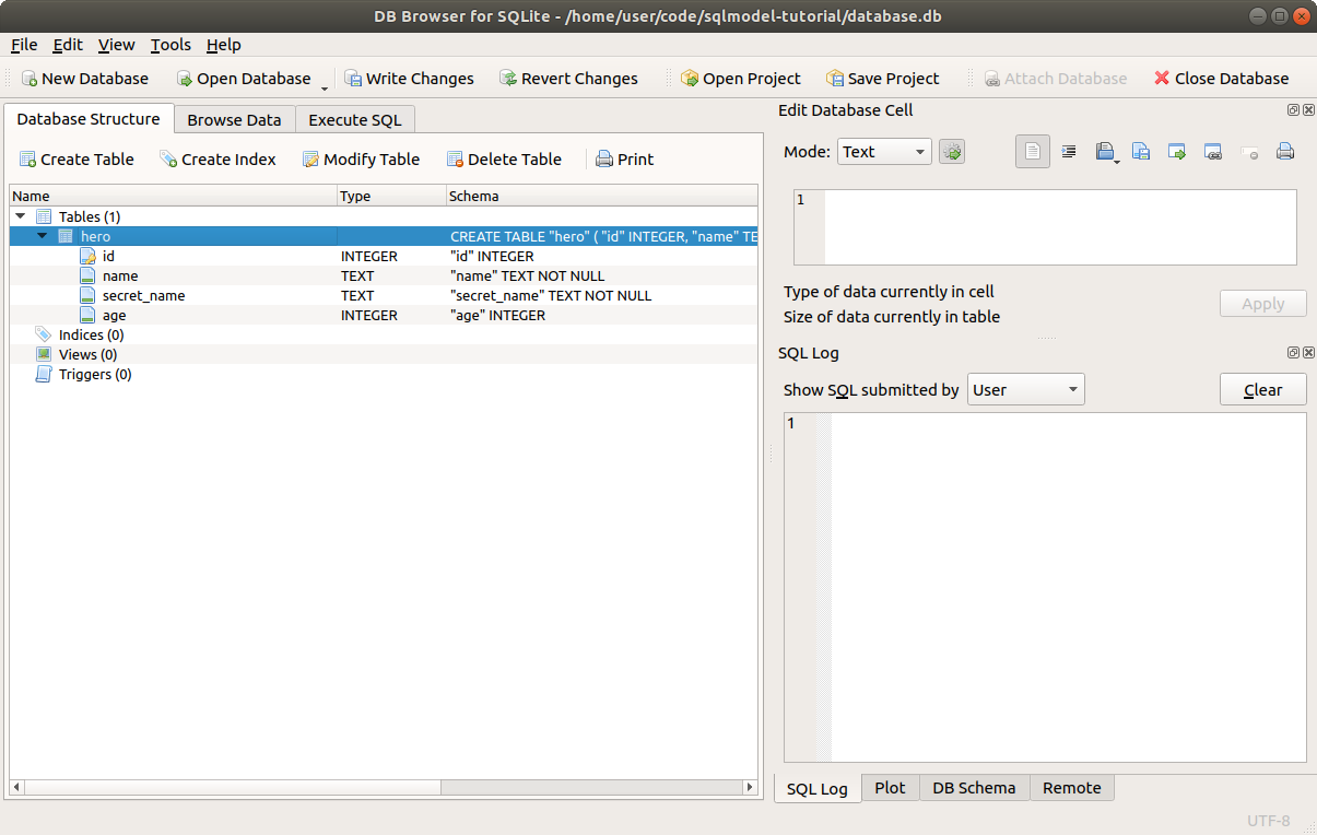 In the next chapters we will start using SQLModel to interact with the database, and we will continue to use DB Browser for SQLite at the same time to look at the database underneath. 🔍